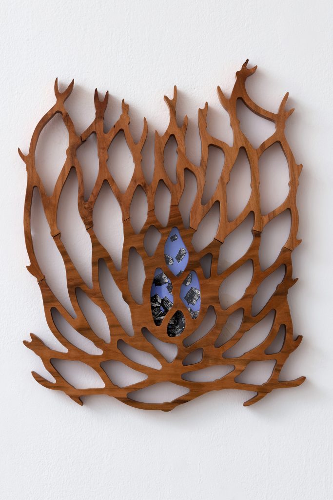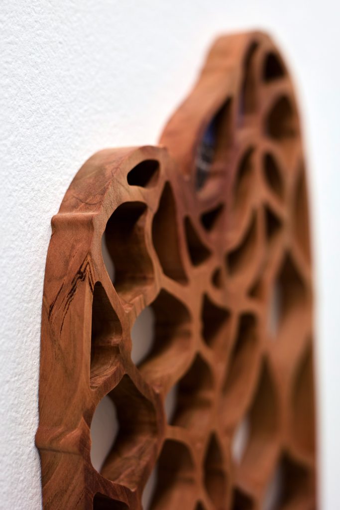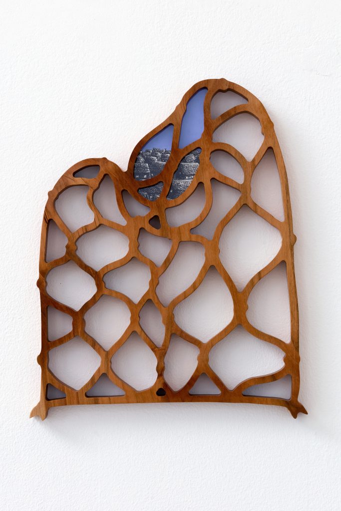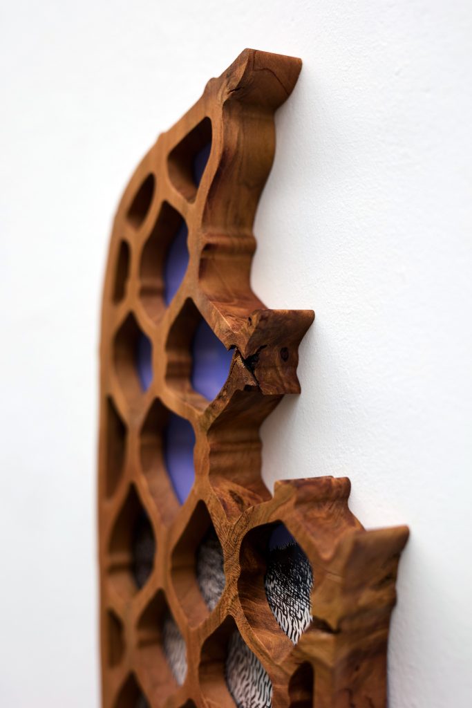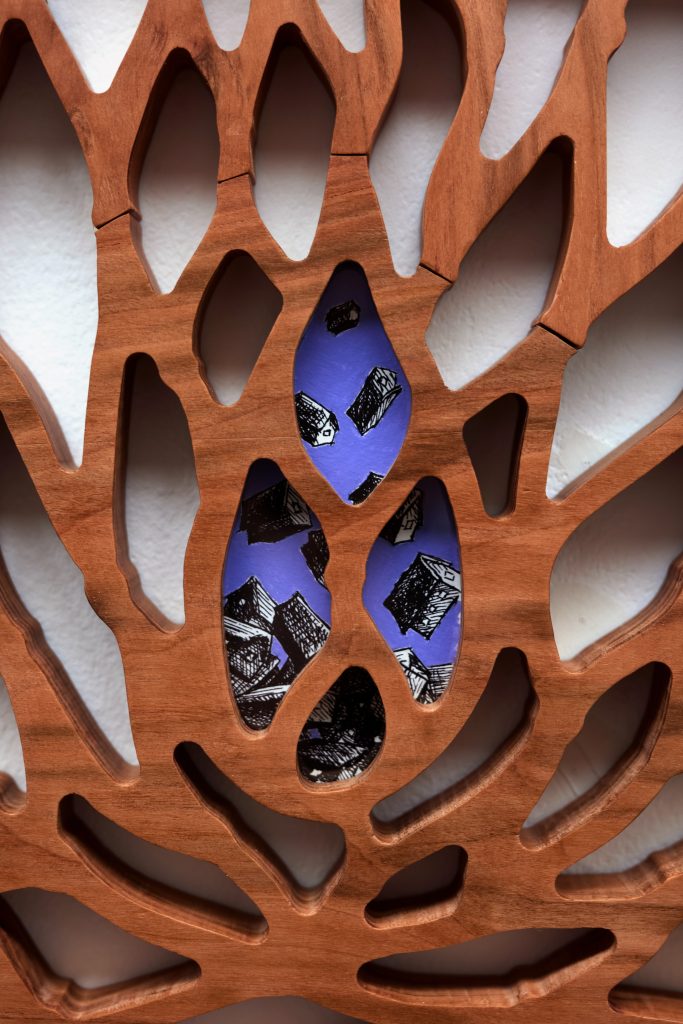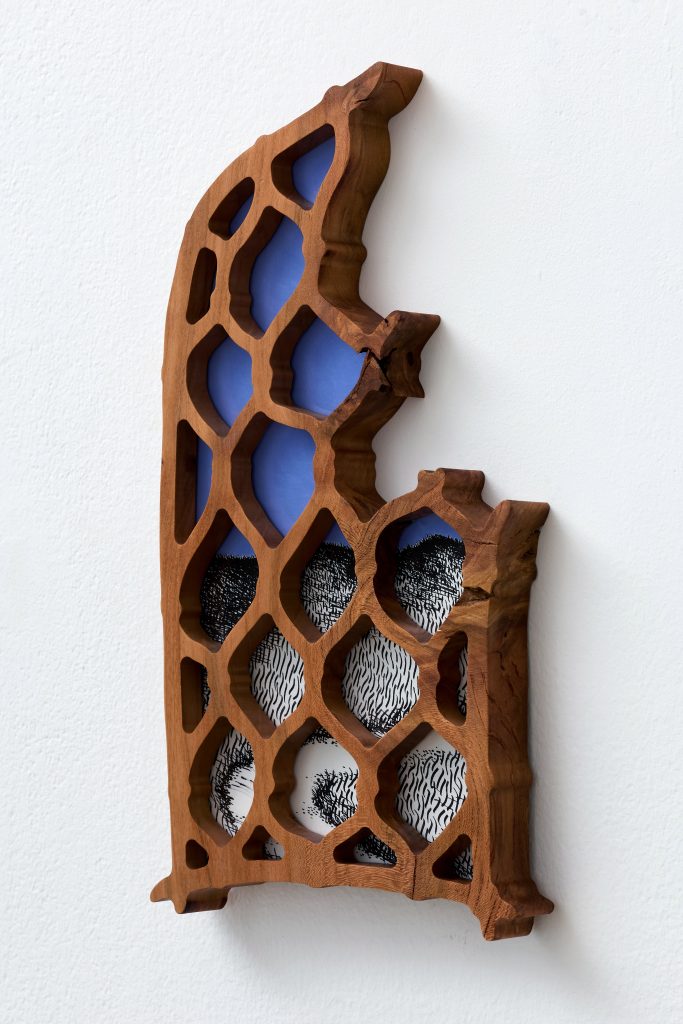 cherry tree wood, ink, acrylic paint, plexiglass, danish oil