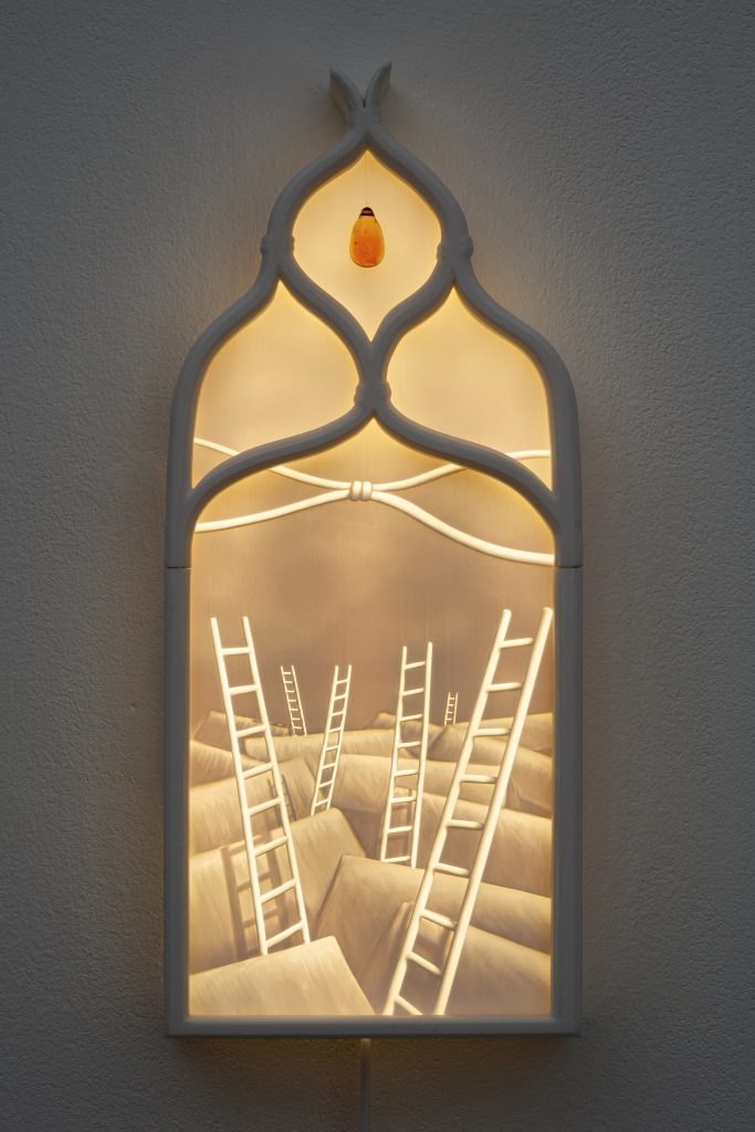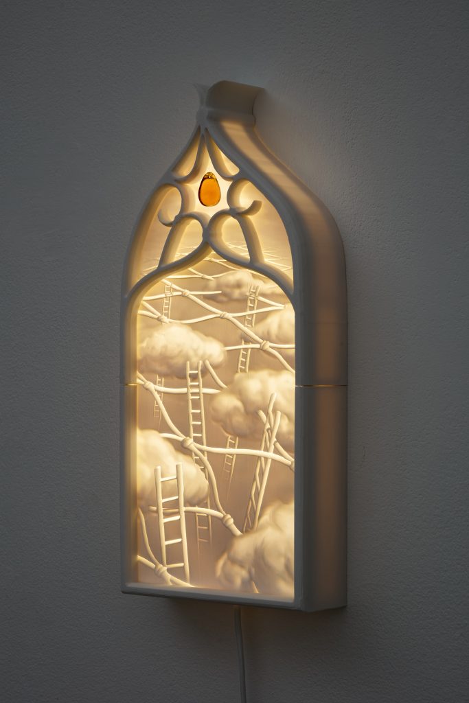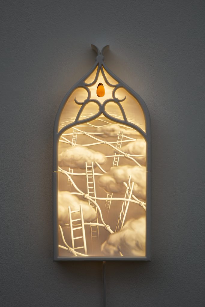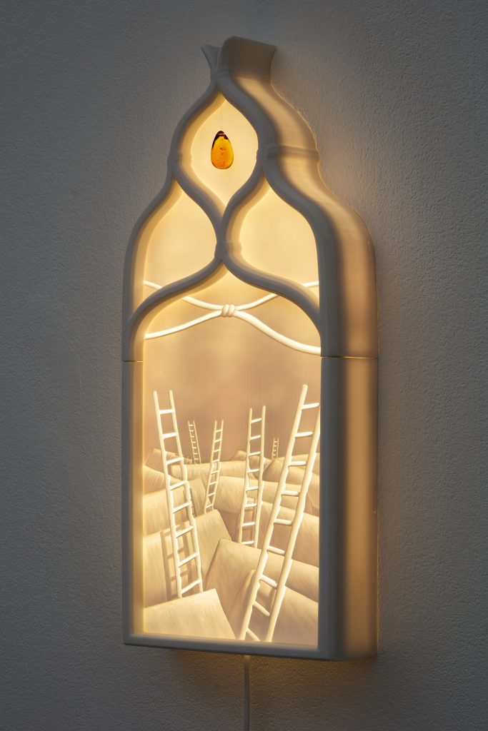 If every fragment of information online serves first and foremost as bait for our attention, how can we place our trust in words? The attention economy manufactures belief, and in the chaos of its competing narratives, James Bridle warns, we may find ourselves entering a new dark age. Through a contemporary reimagining of the 19th-century lithophane technique, Martha Kicsiny explores, via the medium of light, what hopes we can still nurture, and what truths we can still believe in, in the age of technofeudalism.
